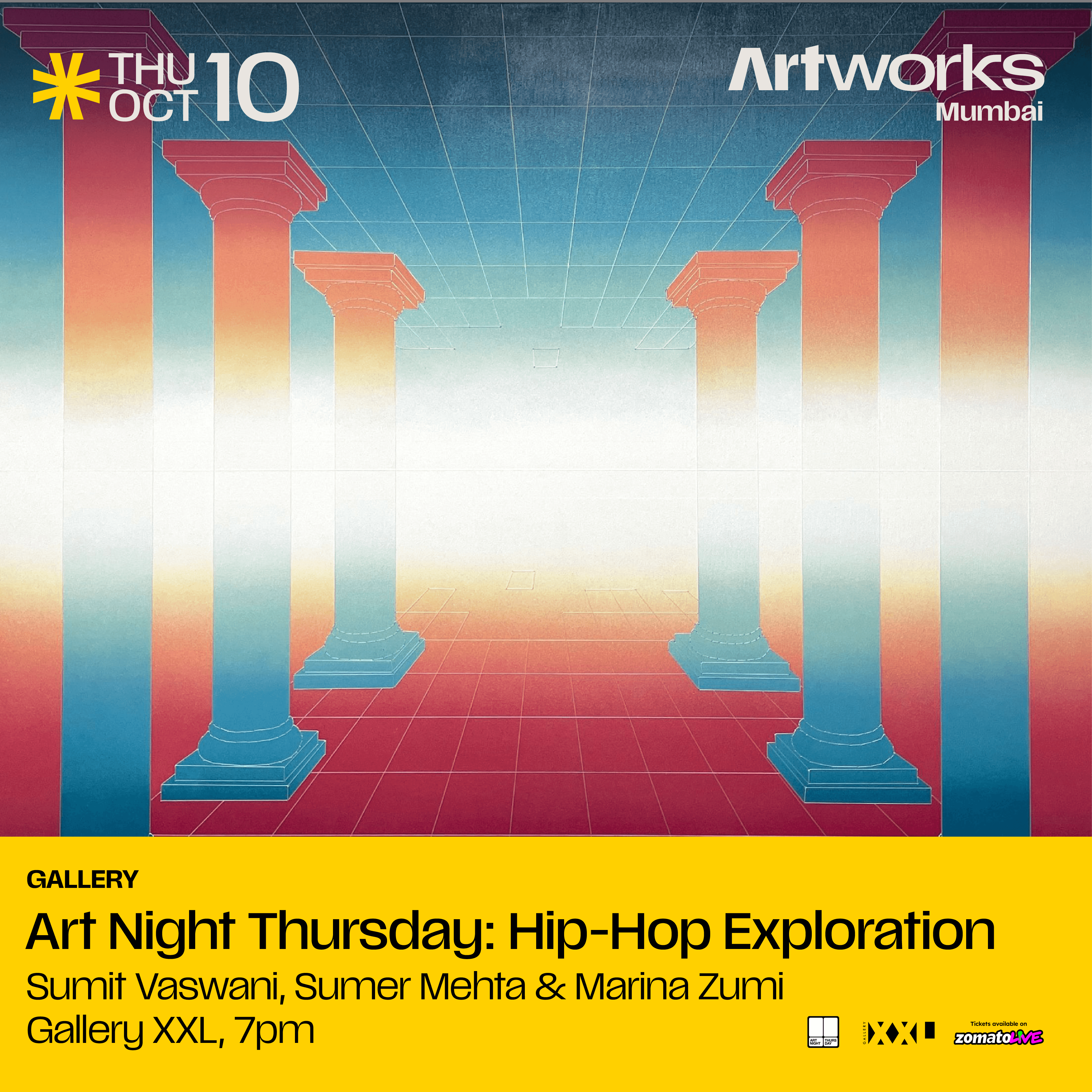 Artworks presents Sumit Vaswani & Sumer Mehta as selectors for a night of hip-hop exploration at Gallery XXL for Art Night Thursday on 10th October where Marina Zumi's artworks will be on display as part of her first solo exhibition in India titled 'SEW DENTS ON EVERY SKYLINE.'